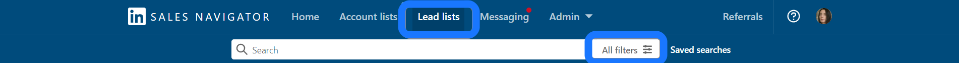 - First things first—open Sales Navigator and click on "Lists" to start building your Leads List.