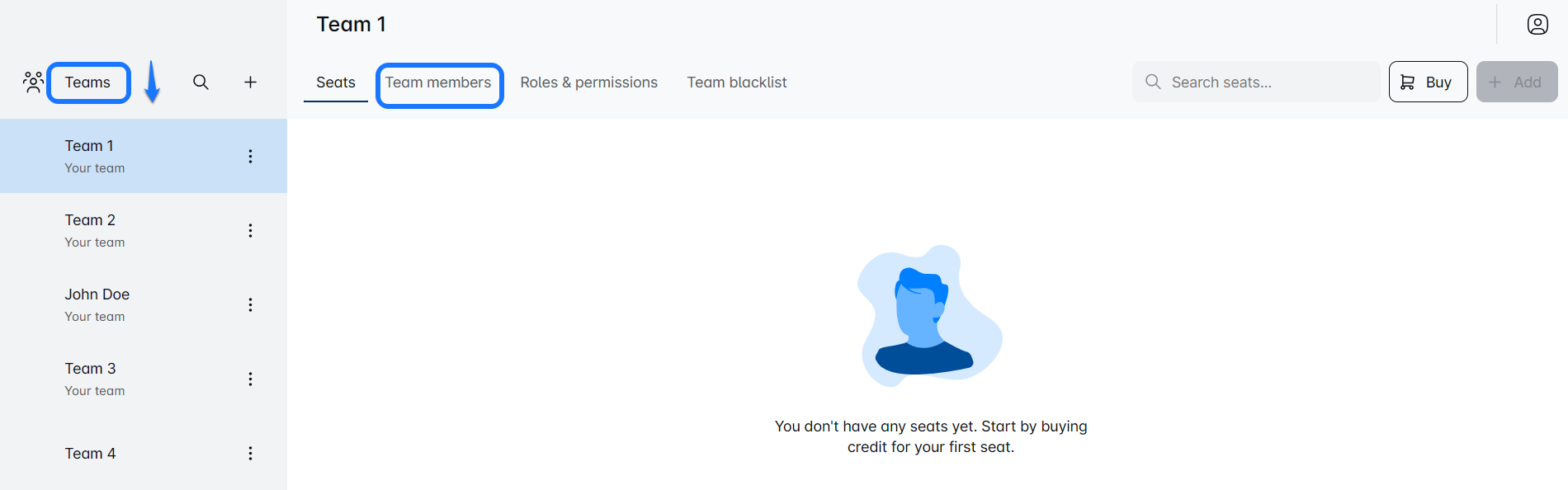 For those managing multiple teams, choose the team from the left side menu and then select the 'Team members' tab of that selected team. This is your gateway to growing your awesome crew! 🌱