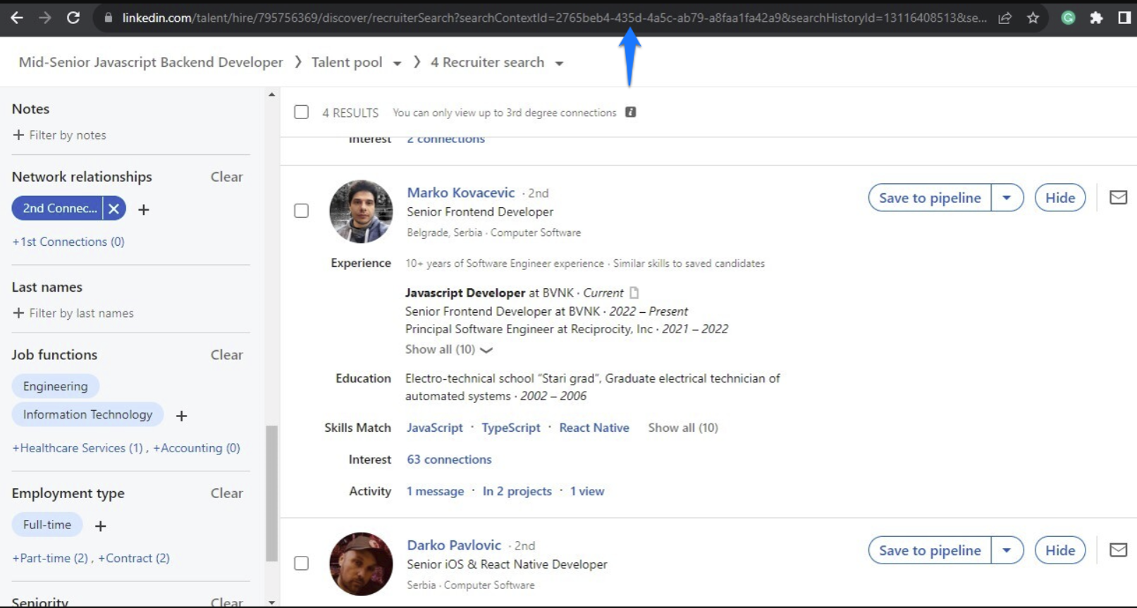 - First things first—head over to LinkedIn! Perform a search in LinkedIn Recruiter or Recruiter Lite. Once you’ve got your search results, copy that URL link. This will be the foundation of your Leadsy campaign. 🌐
