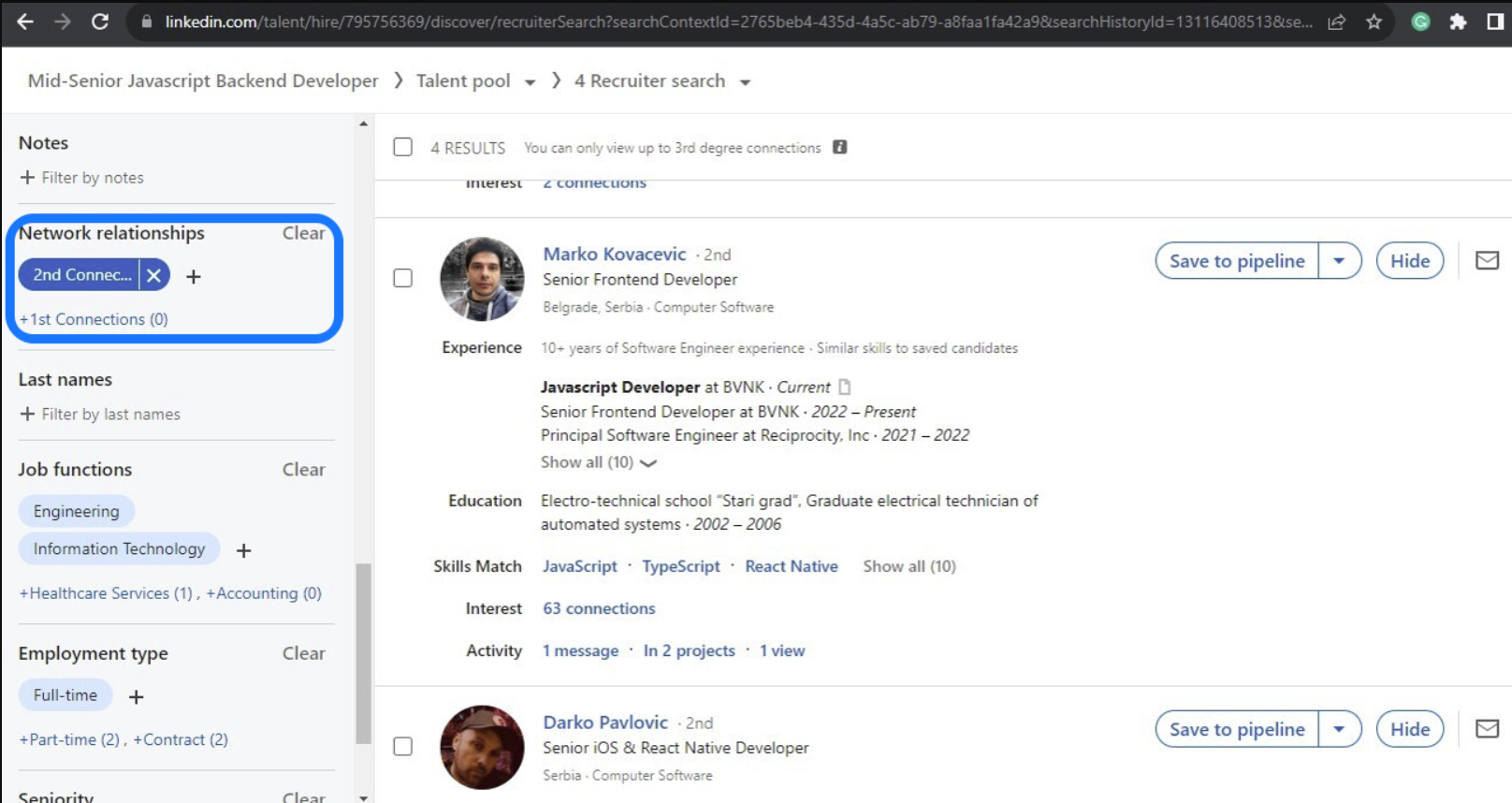 - This part is super important! Make sure the Network Degree connection type matches in both Leadsy and LinkedIn Recruiter. Use the Network Relationships filter on LinkedIn Recruiter to confirm this—it's key to targeting the right audience. 🔍