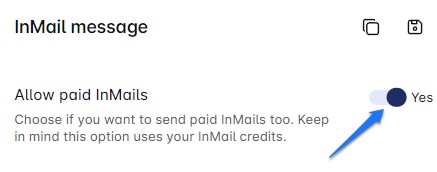 Here's where it gets interesting: Leadsy enables you to blend paid and free InMails in your Smart Sequence. Our algorithm makes a difference between Open Profile users and those who can only receive paid InMails. By toggling the "Allow paid InMails" button in the platform, you empower the Smart Sequence to make this decision for you, ensuring a smooth path to your lead through InMail.