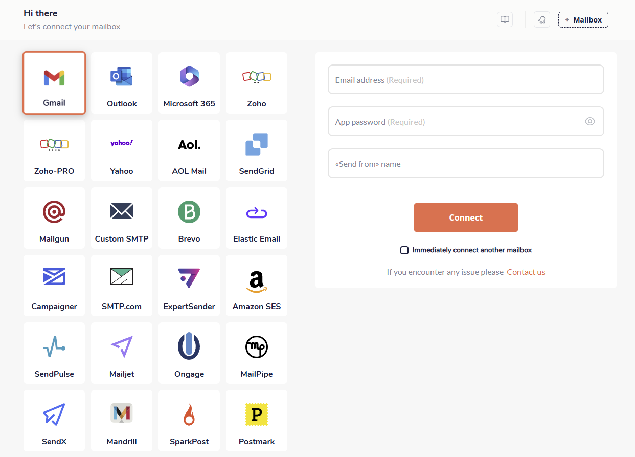 3. After you log in to your InboxFlare account, add your email accounts - InboxFlare is compatible with all major email providers like Gmail, Outlook, and Zoho, and it also supports custom SMTP.