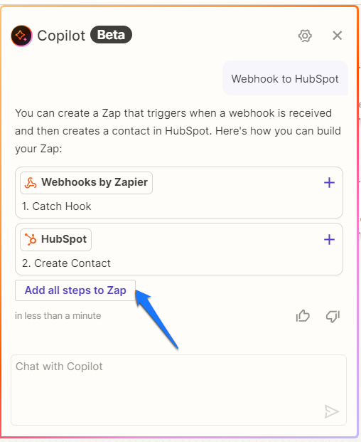 - Once the flow is ready, click "Add all steps to zap" to include all the steps you need.