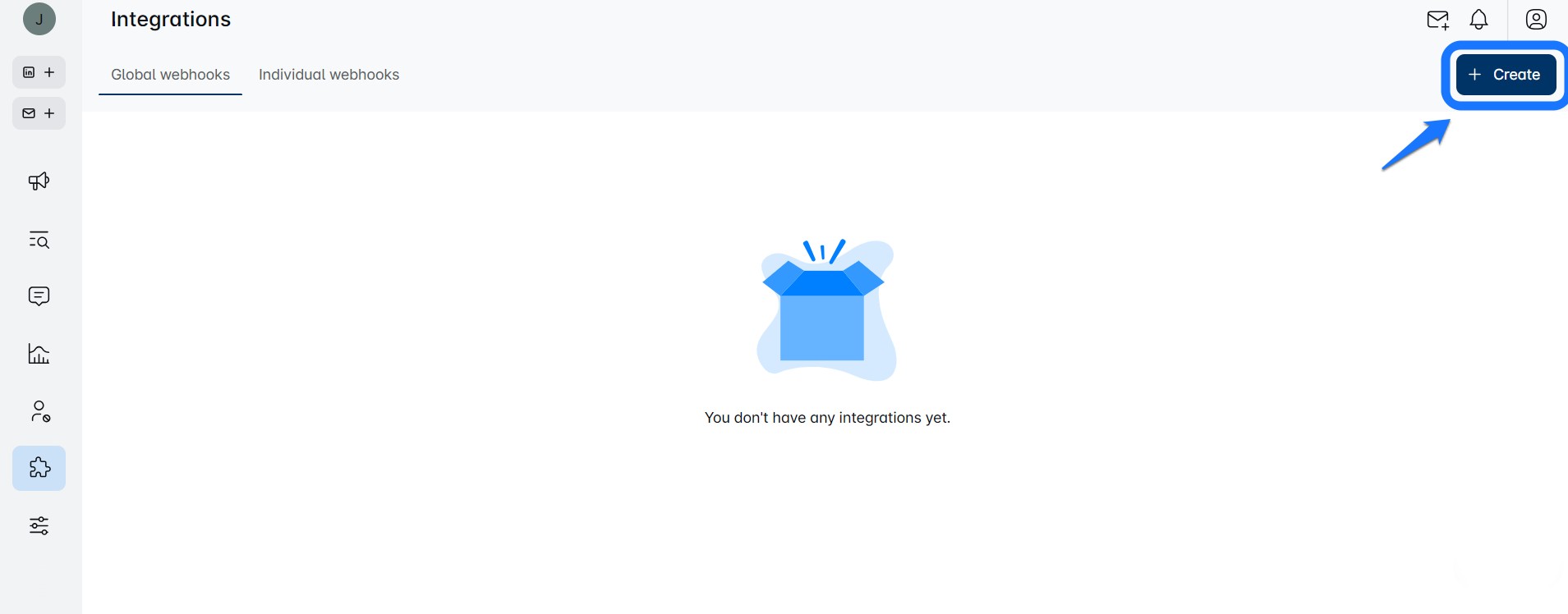 Go to the Webhooks page on your Leadsy dashboard.